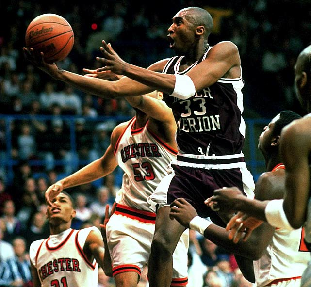 Kobe? He paved the way. Living in Italy at a young age, he watched his father -- Joe "Jelly-Bean" Bryant -- entertain Italian crowds with his stylish play. Dominated at Lower Merion High in Pennsylvania, breaking Wilt Chamberlain's Pennsylvania high-school scoring record of 2,883 points. The New Orleans Hornets, in one of the most boneheaded trades in NBA history, drafted him 13th in the '96 draft (Please explain